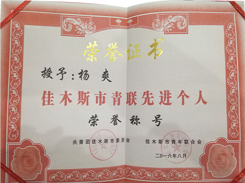 2016.8月杨总佳木斯市青联先进个人