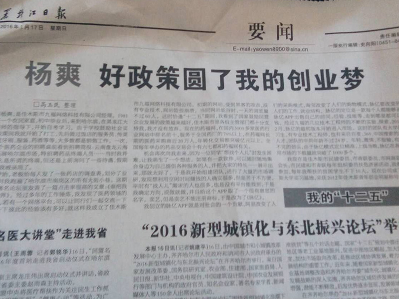 2016年01月17日“杨爽-好政策圆了我的创业梦”-在黑龙江日报